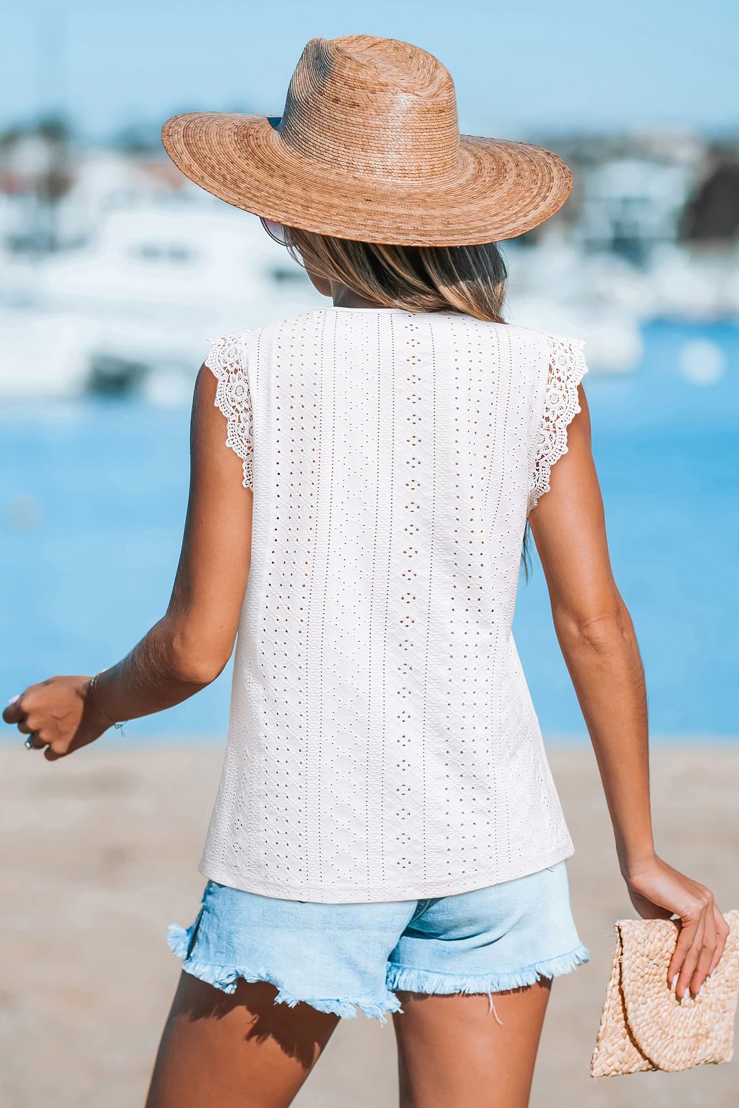 The Soft Heat White Top brings breezy summer charm with a delicate twist! It features a V-neckline, sleeveless cut, and ruffled trim for a subtle, flirty finish.