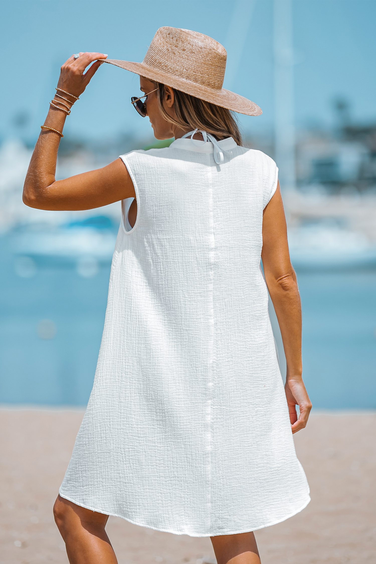 Split Neck Mini Cover-Up DressWoven