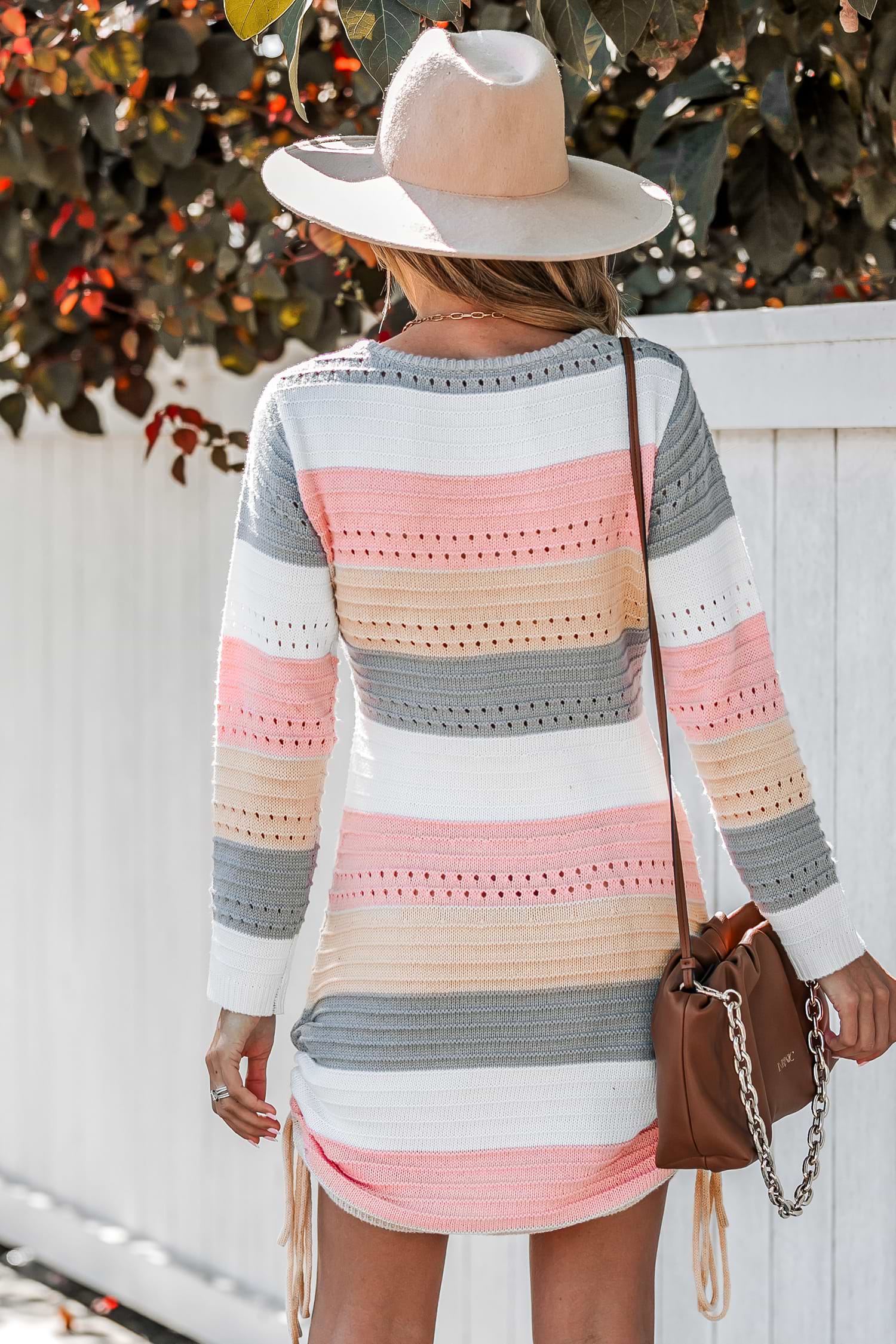 Neutral Striped Long Sleeve V-Neck Knit Top