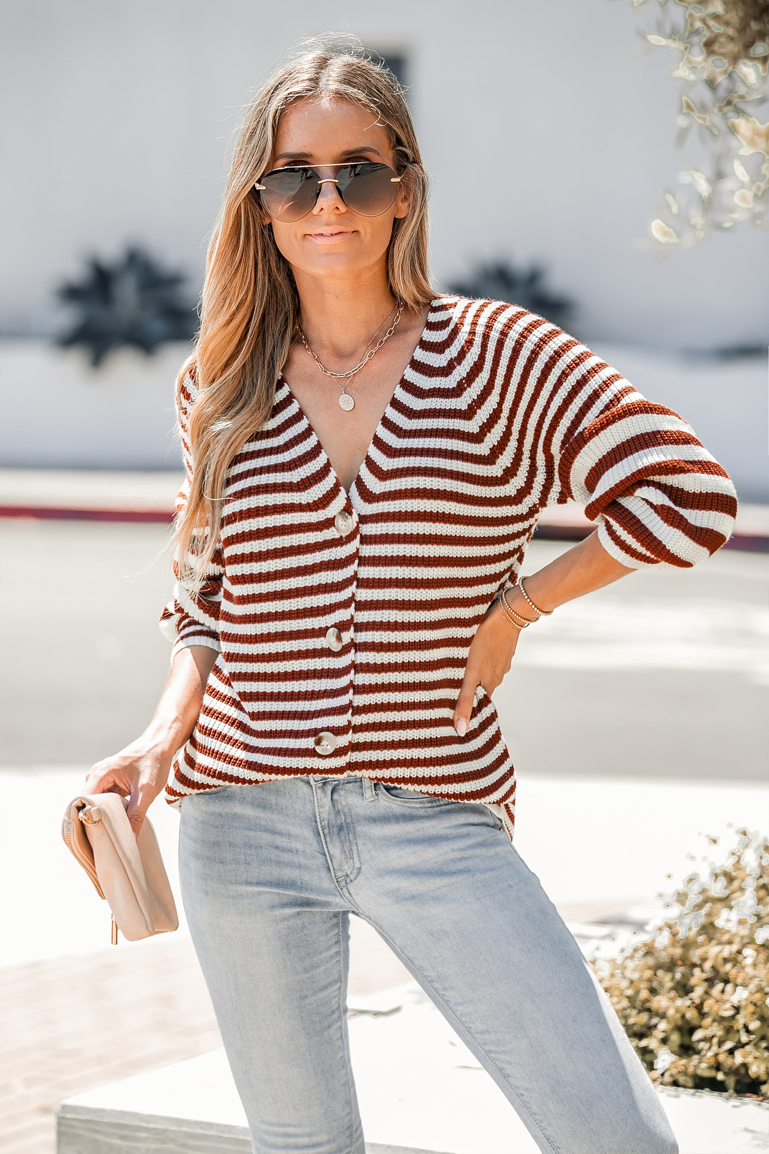 Apricot Ombre Puff Sleeve Button Up Cardigan
