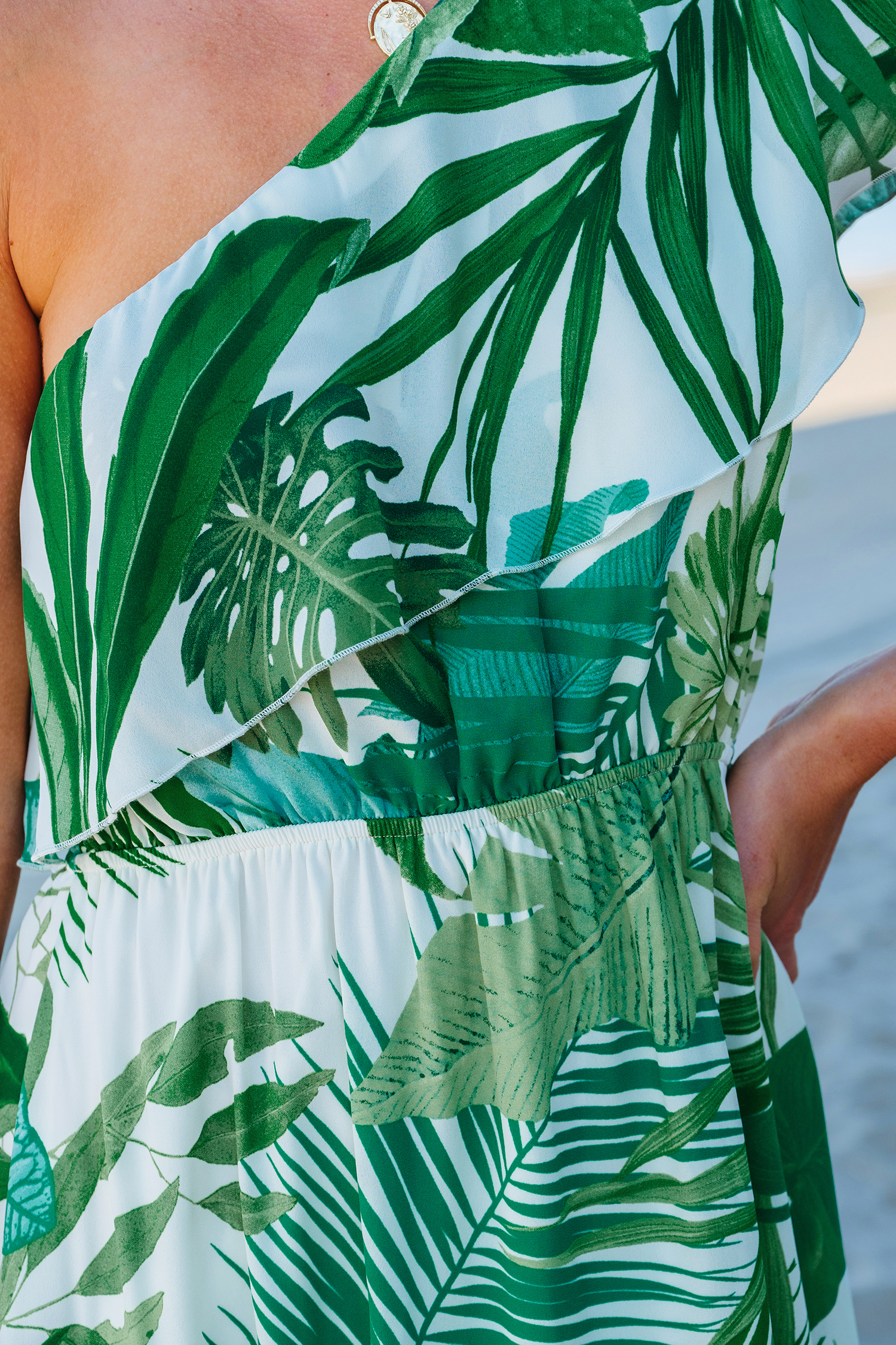 HomeTropical One-Shoulder Ruffle Maxi Dress