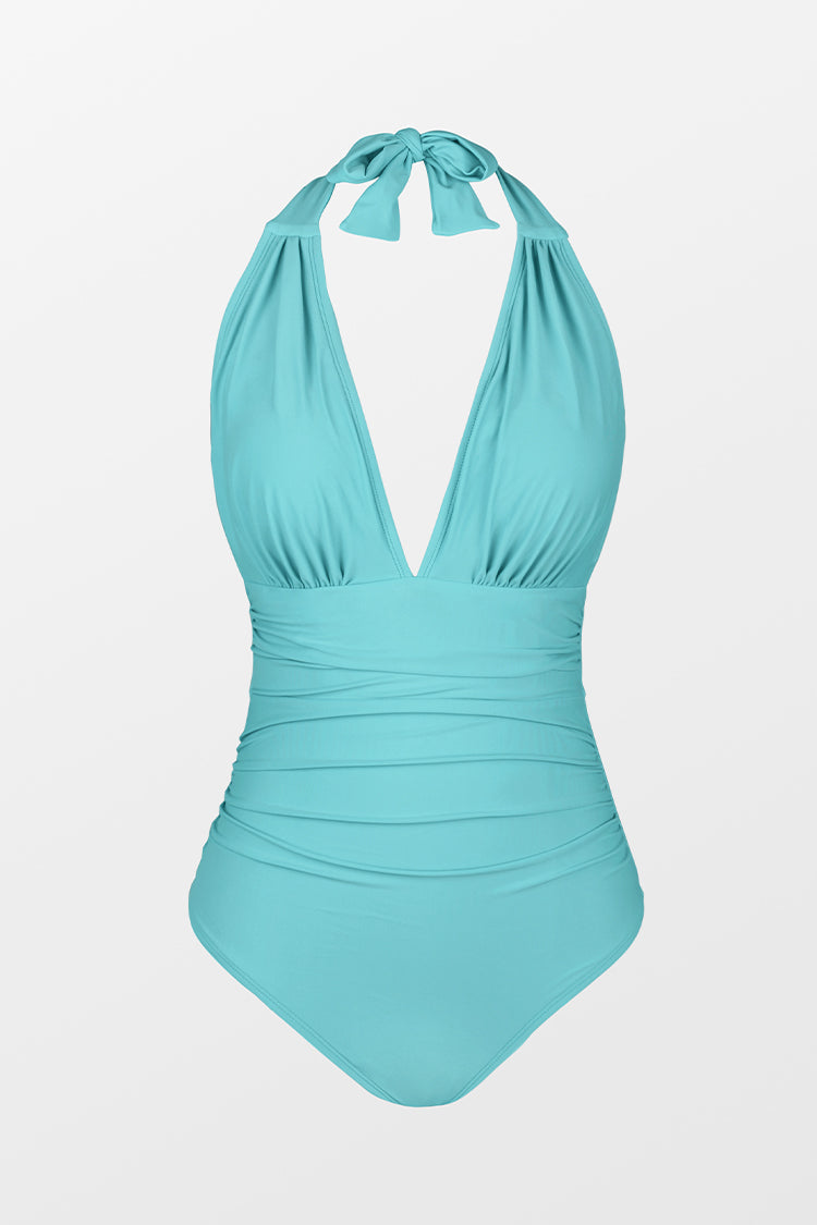 HomeV Halter Neck Shirred Front One Piece Swimsuit