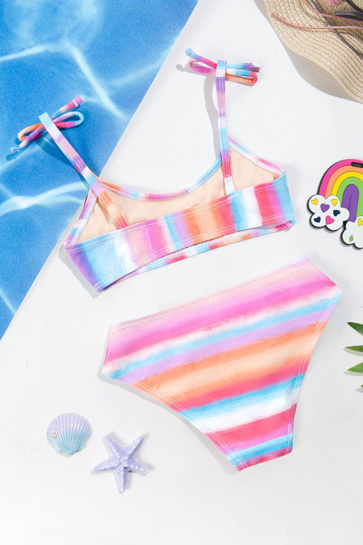 Vapor Wave Faux Tie Bralette And Mid Rise Hipster Bikini Set