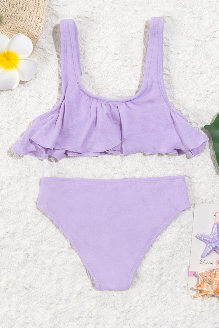 Girls Vapor Wave Floral Ruffled Bikini Set
