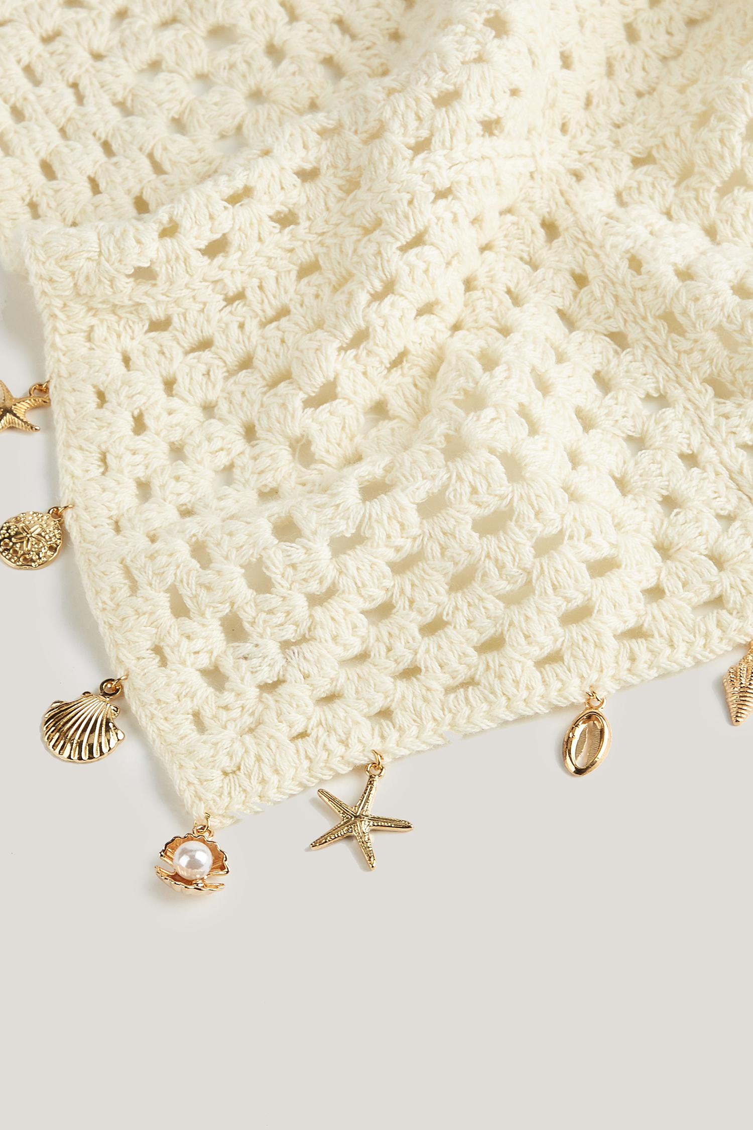 The Waves & Wonders Beige Scarf is made for seaside style! Crochet detailing and delicate seashell charms add subtle texture and a touch of coastal charm.