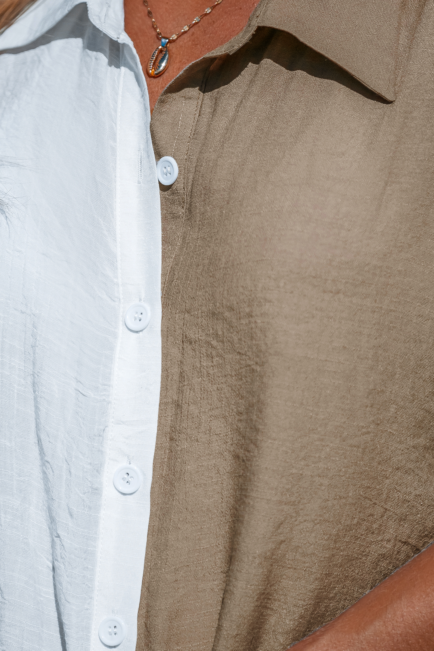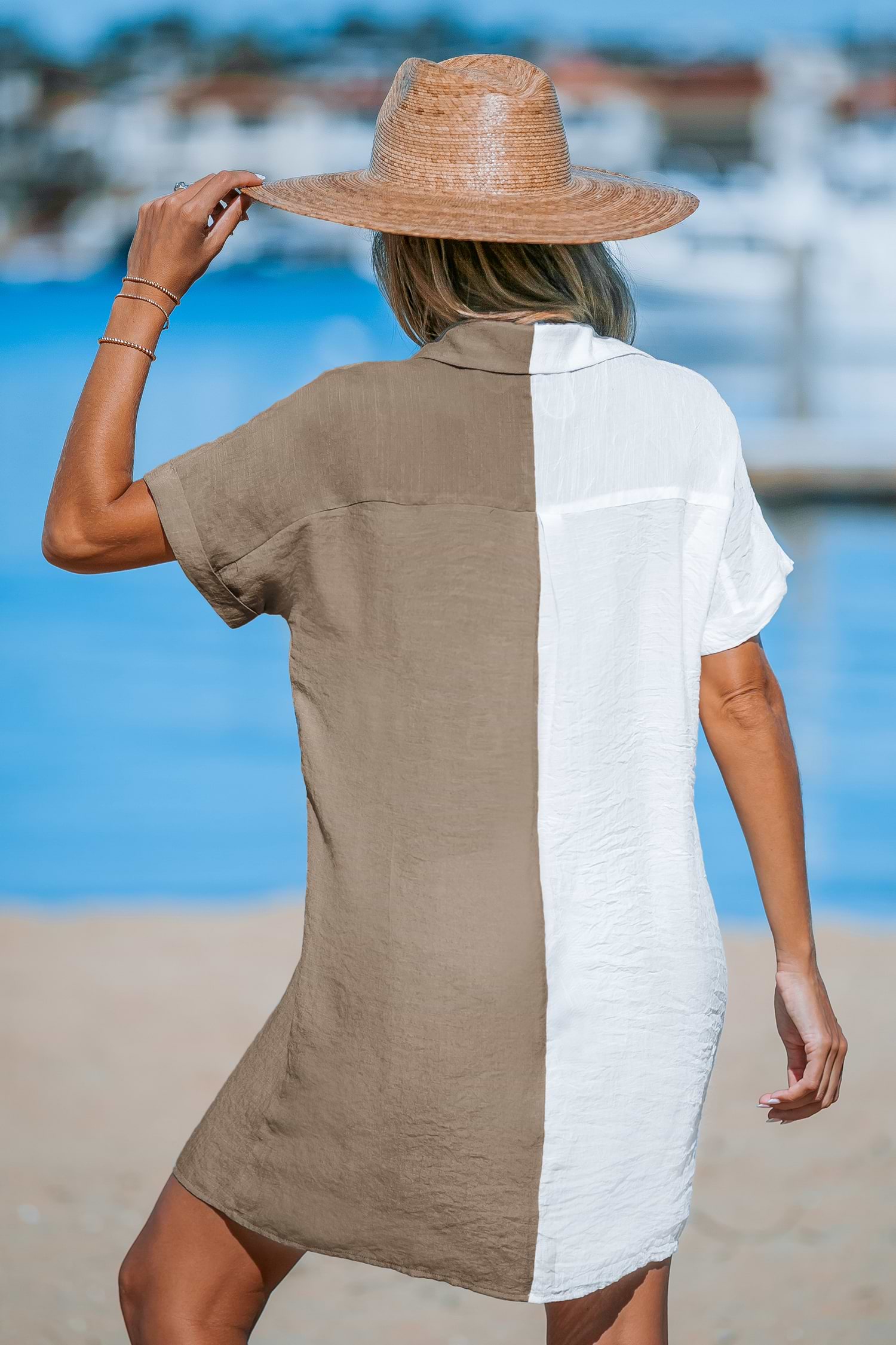 HomeWhite Collared Button Front Cover-Up T-Shirt Dress