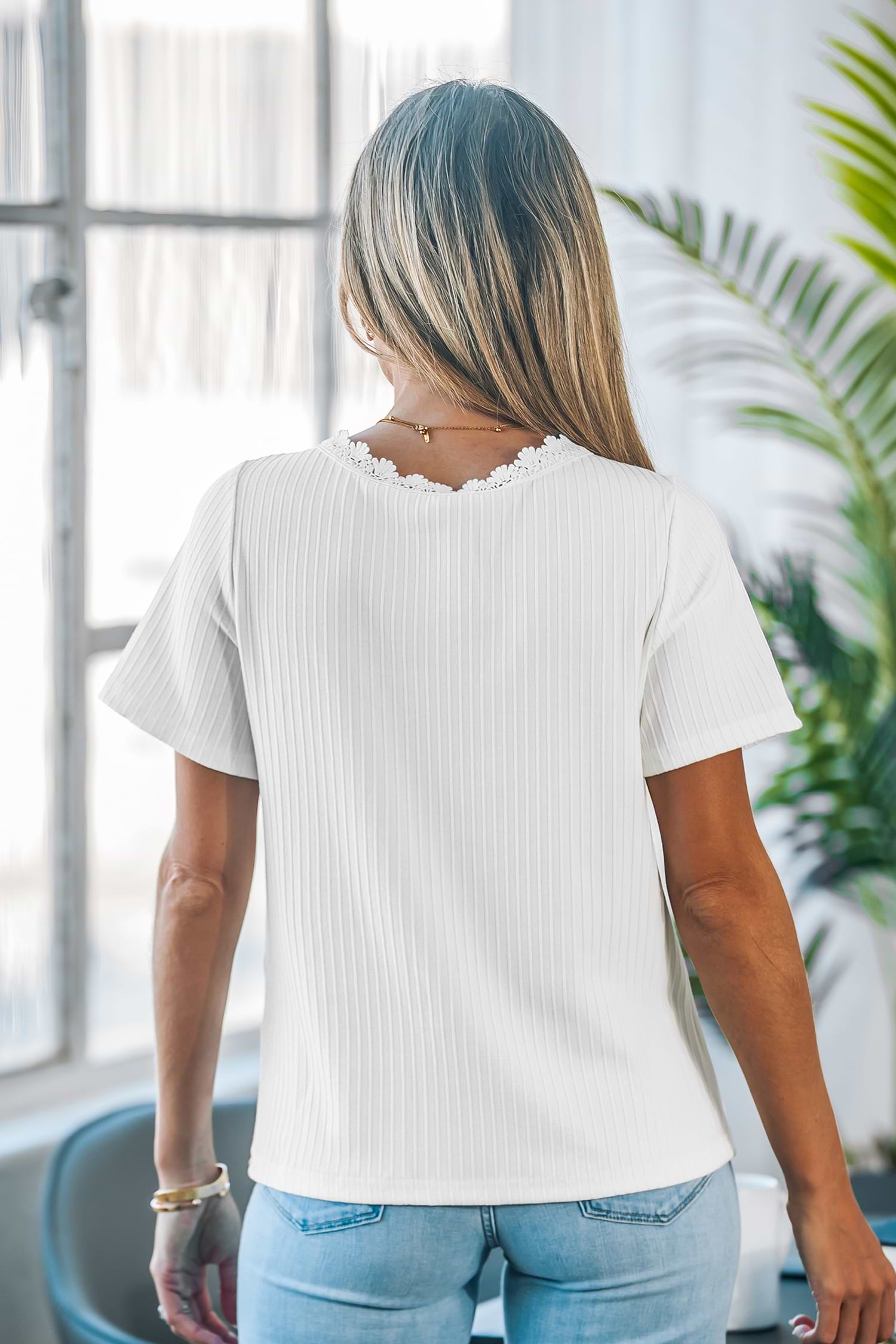 HomeWhite V-neck Lace Trims Tops