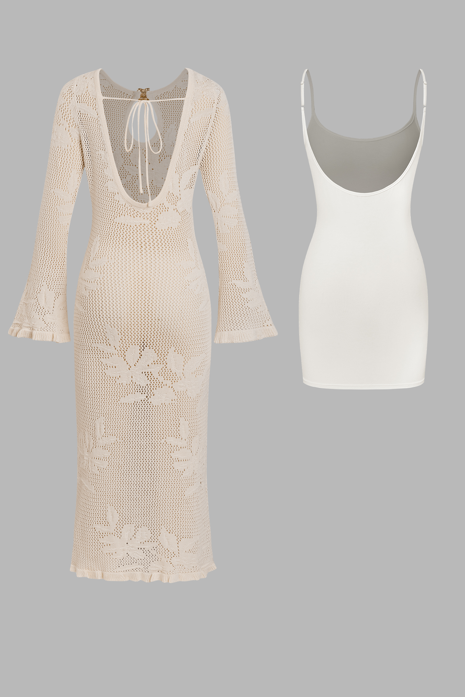The Perfect Pairing Midi Dress is a favorite for dressed-up occasions! With a round neckline, long sleeves, and matching slip dress for full coverage, this midi was made to mix, mingle, and repeat.