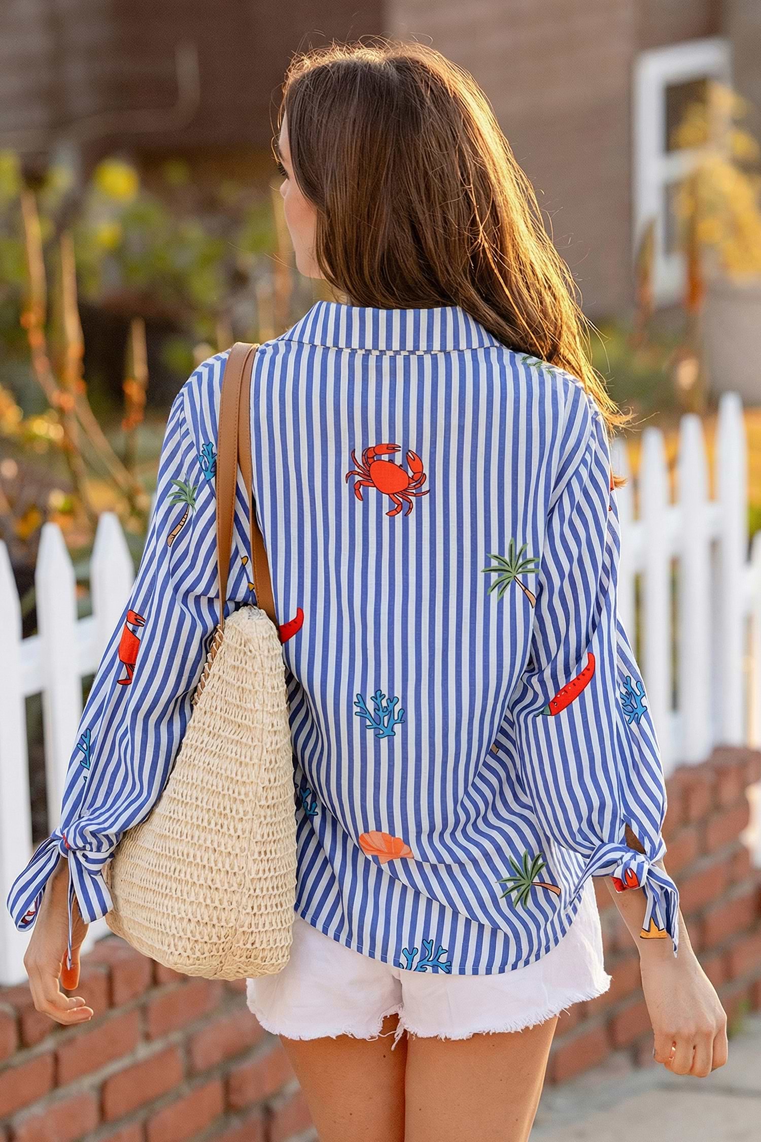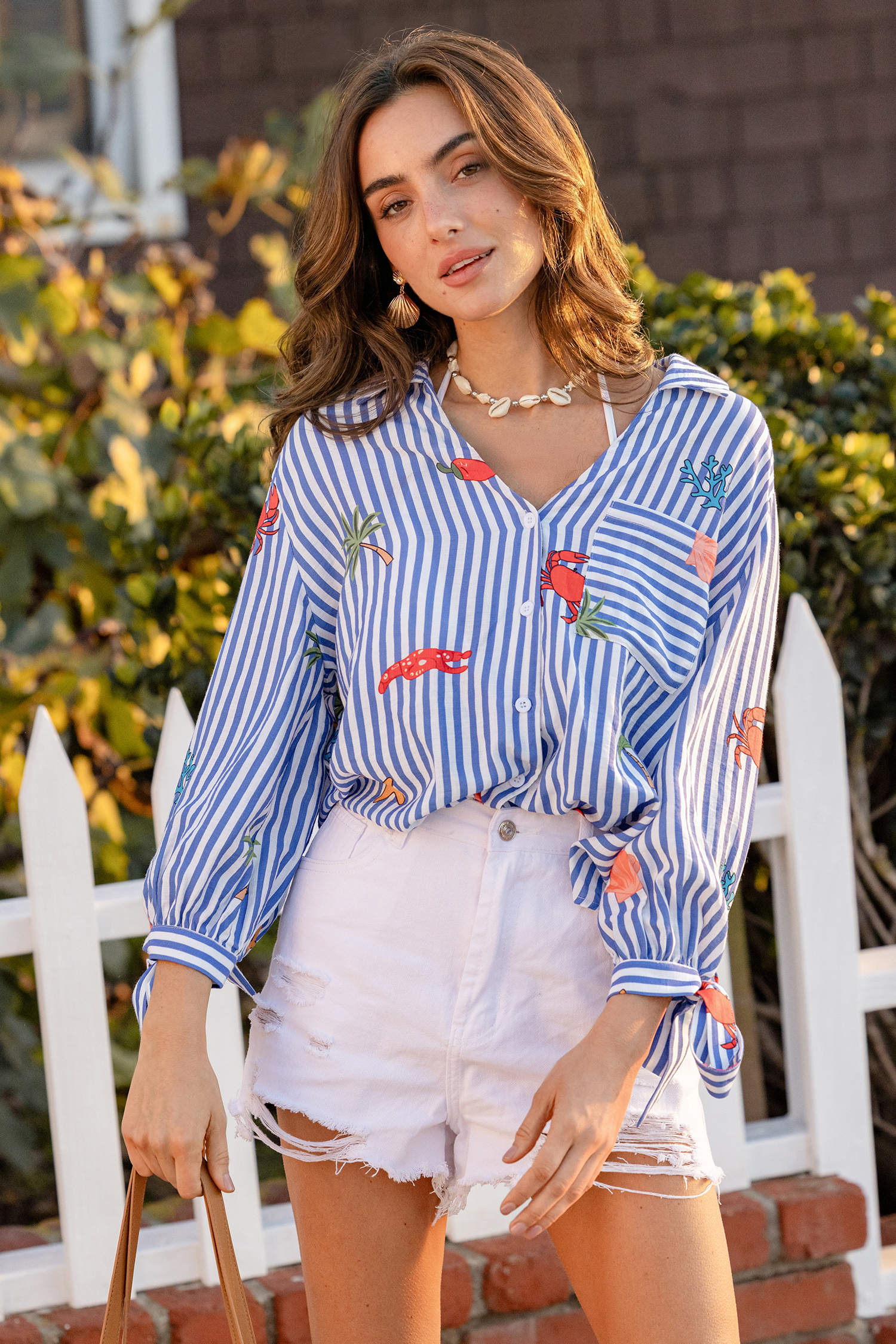 The Yachting Striped Shirt channels classic, nautical vibes! The collared neckline and 3/4 length sleeves keep it polished, breezy, and perfect for layering or wearing on its own.