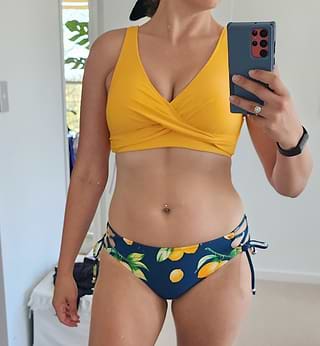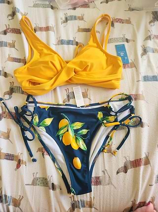 Yellow Wrap Front & Floral Print Tie Side Bikini Set